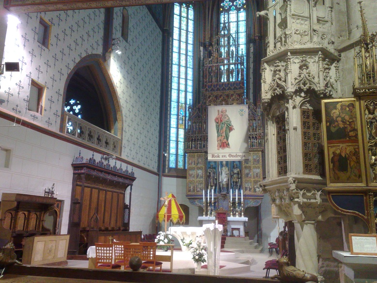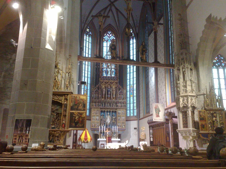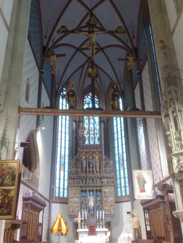 časť kostola je vysoká 24 metrov, veže kostola potom predstavujú výšku cez 70 metrov. V priestranstve šesťposchodovej veže, konkrétne vo štvrtom